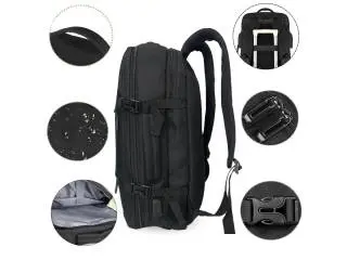 la mochila para viaje tiene muchos compartimentos y bolsillos. Puedes dividir tu ropa y tus artículos electrónicos.